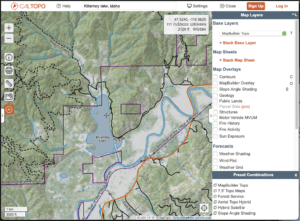 There’s a great variety of map layers, including USGS and Forest Service topographic maps, satellite imagery, and shaded relief. The contour map options allow a more precise view of a parcel’s topography.