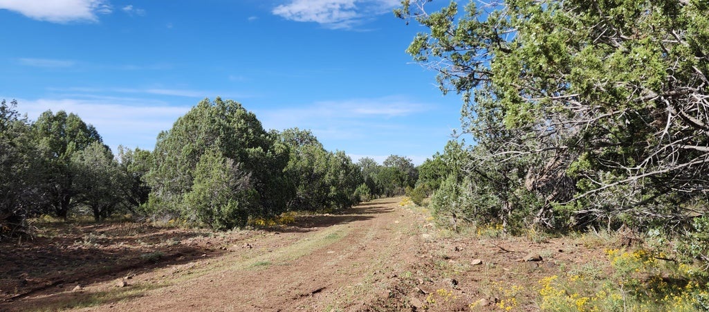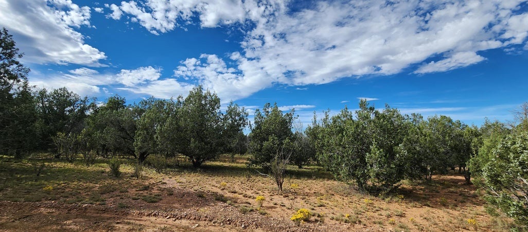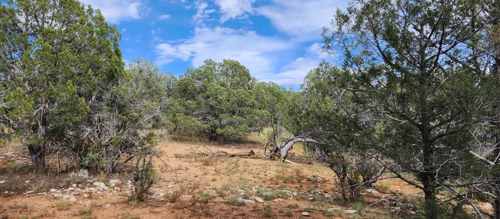 Spectacular lot at almost 6,000 ft. This one is truly one of the most beautiful sites on the ranch. Huge, beautiful trees and they are plentiful! Both old growth Junipers and large Pinon Pines. Abuts State Land to the north. The terrain is varied and interesting, and most important, it is useable! At least one seasonal stream passes through (and there may be more). Meadows, vistas, rolling hillside, and more for you to explore. 2 ways in but the friendliest drive is from the Ash Fork side. Hunt zone 10 for Elk, Deer, and Antelope… there is a campsite waiting for you!