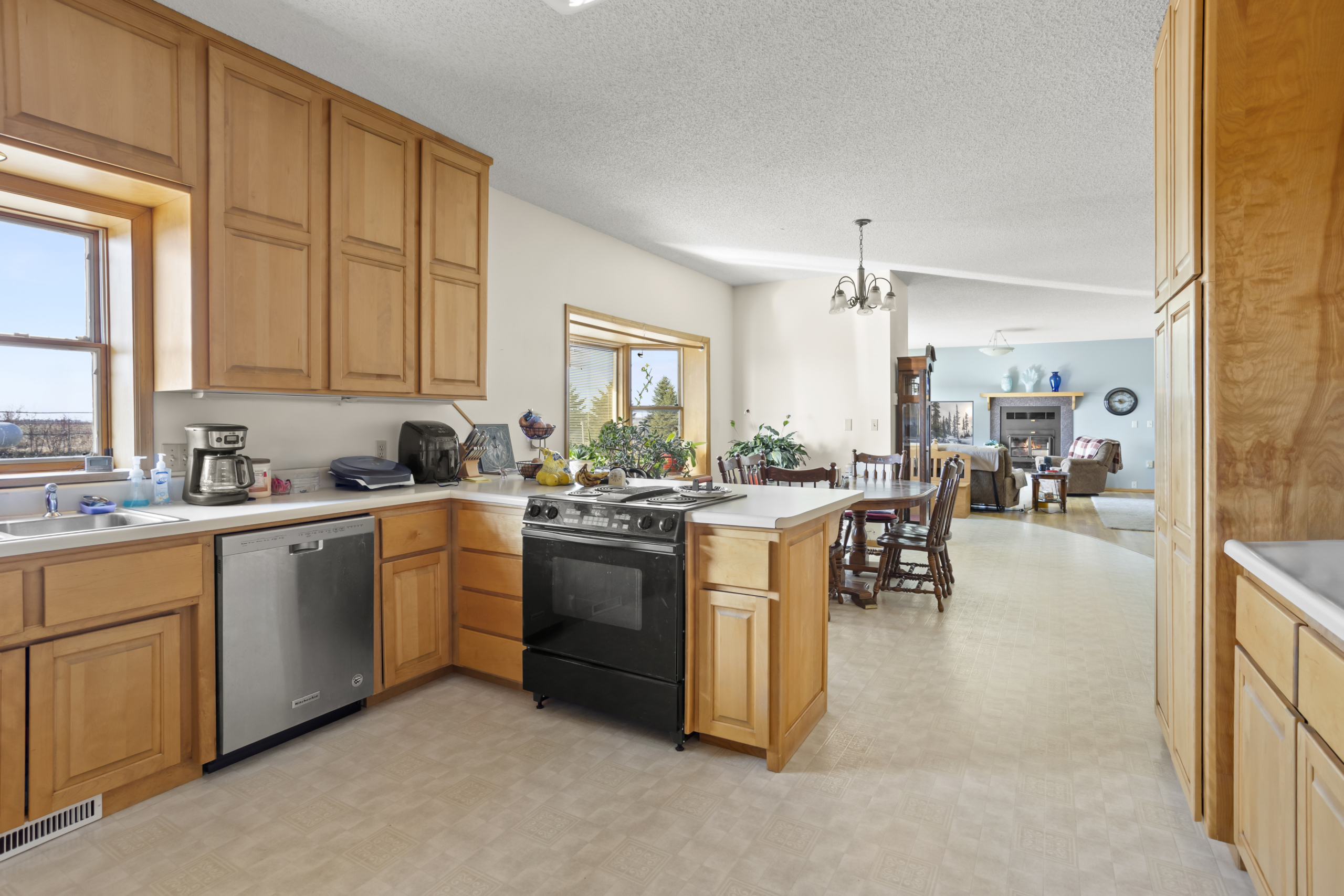 Explore miles of trails that wind through chokecherry groves, plum thickets, and quiet meadows. Spend your days riding ATVs, walking the land, or simply sitting back and soaking in the stillness. Inside, the spacious home offers six bedrooms, cozy gathering spaces, and stunning views that bring the outdoors right to your window.