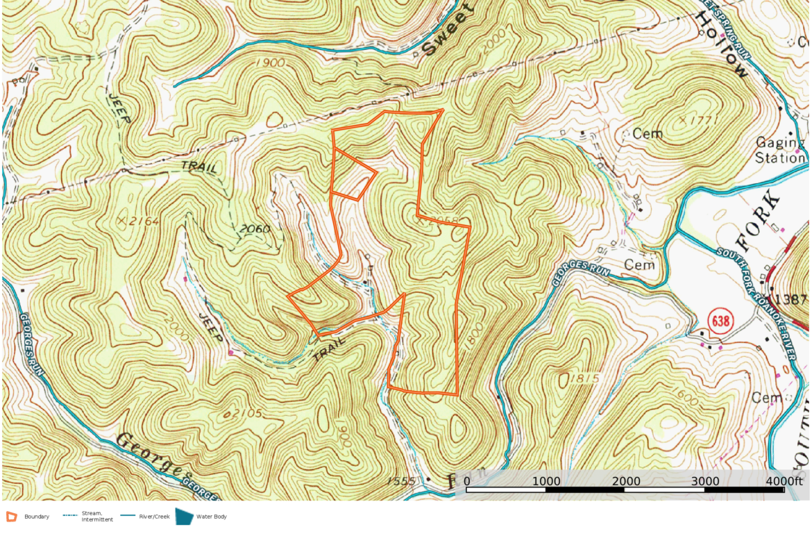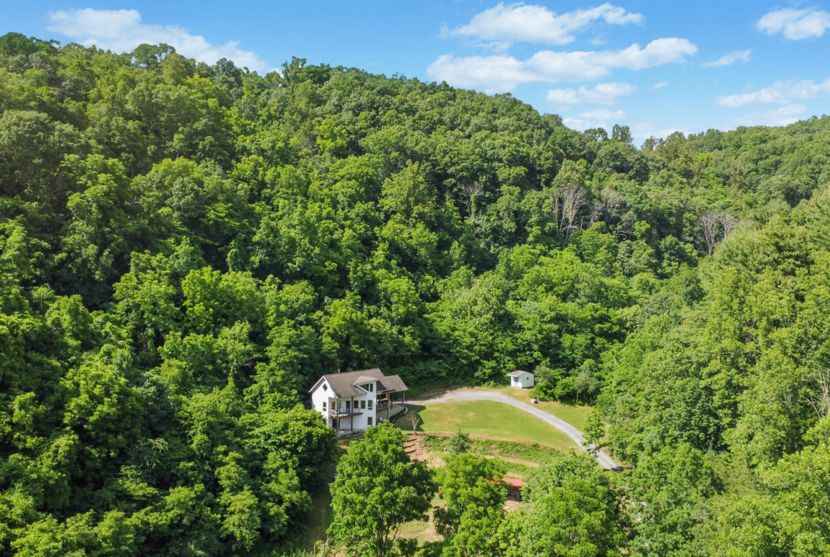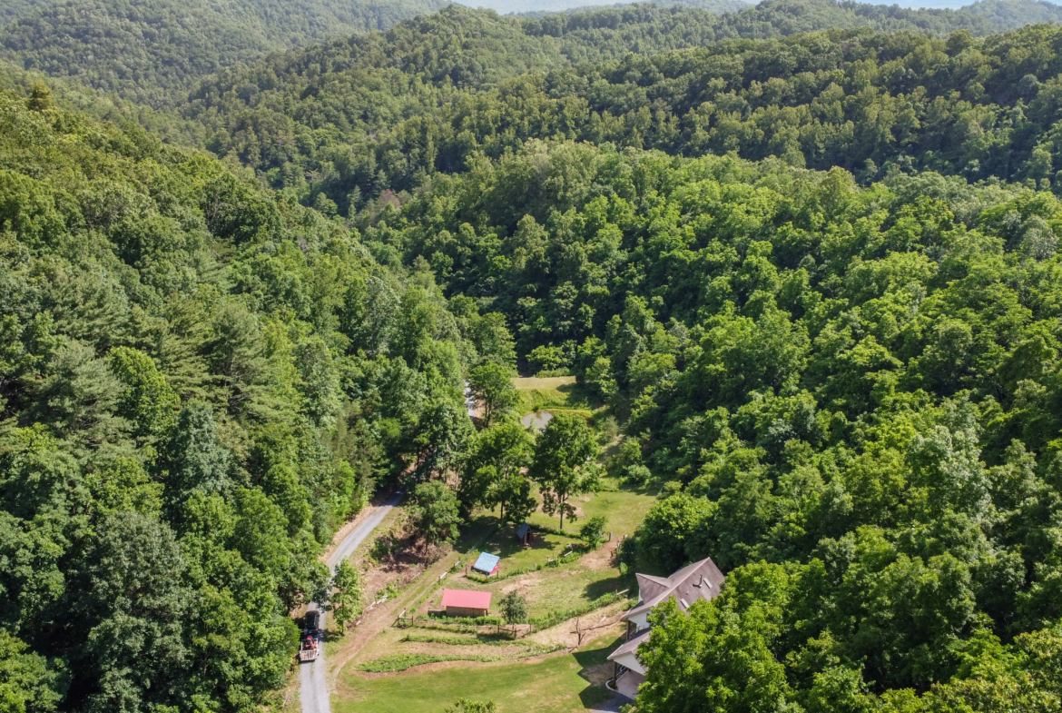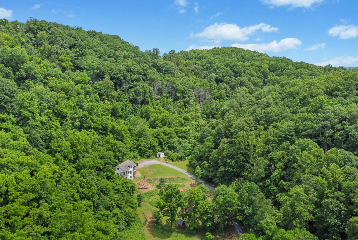 Trails meander through mature hardwood forests and lead to fire circle clearing for campfire gatherings. Abundant wildlife and forest edibles including ginseng, mushrooms, berries & nuts. Buried electric line, 20 gpm well, surveyed boundary. This rare end-of-the-road getaway is ready for your adventures and meditations.
