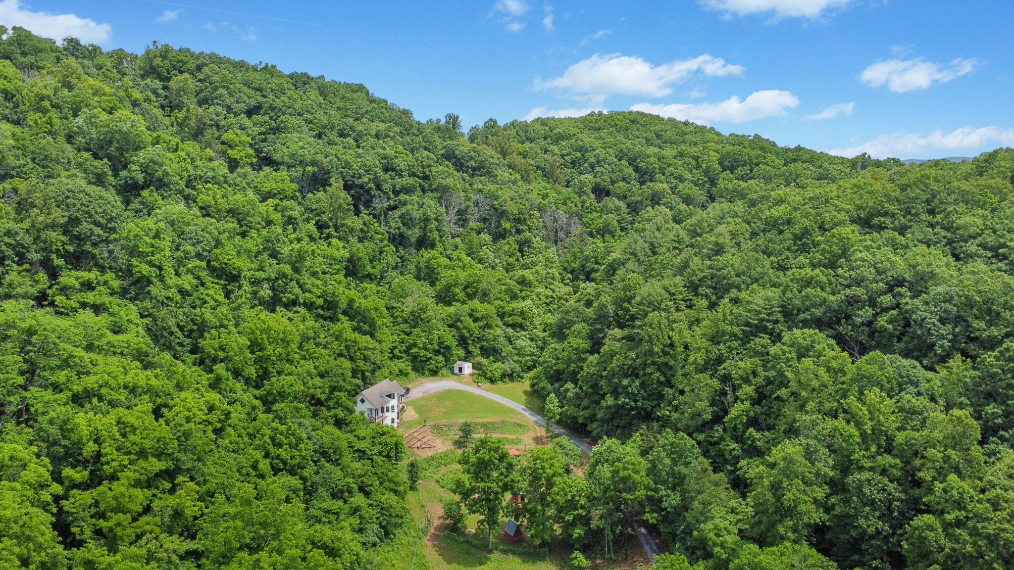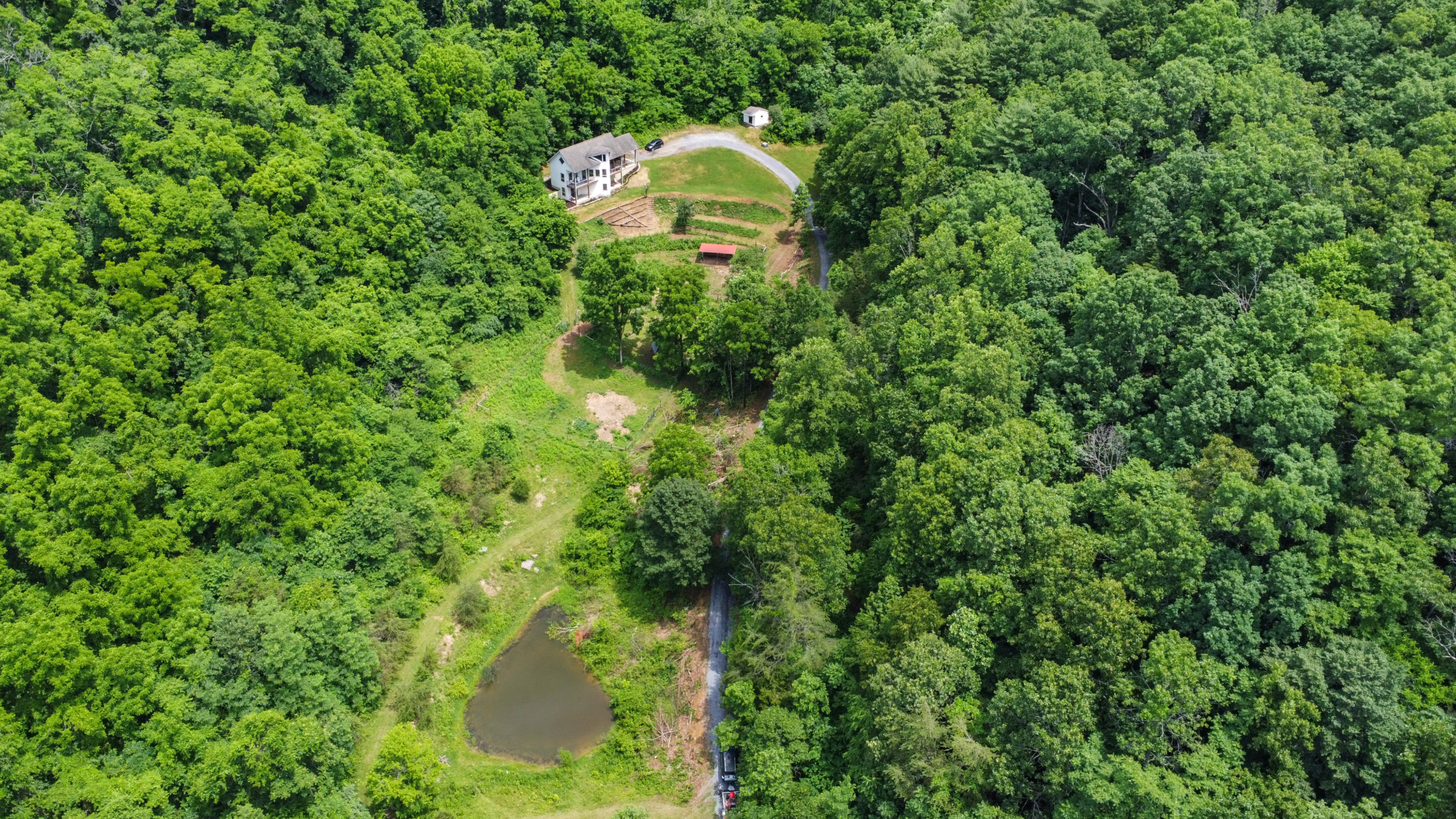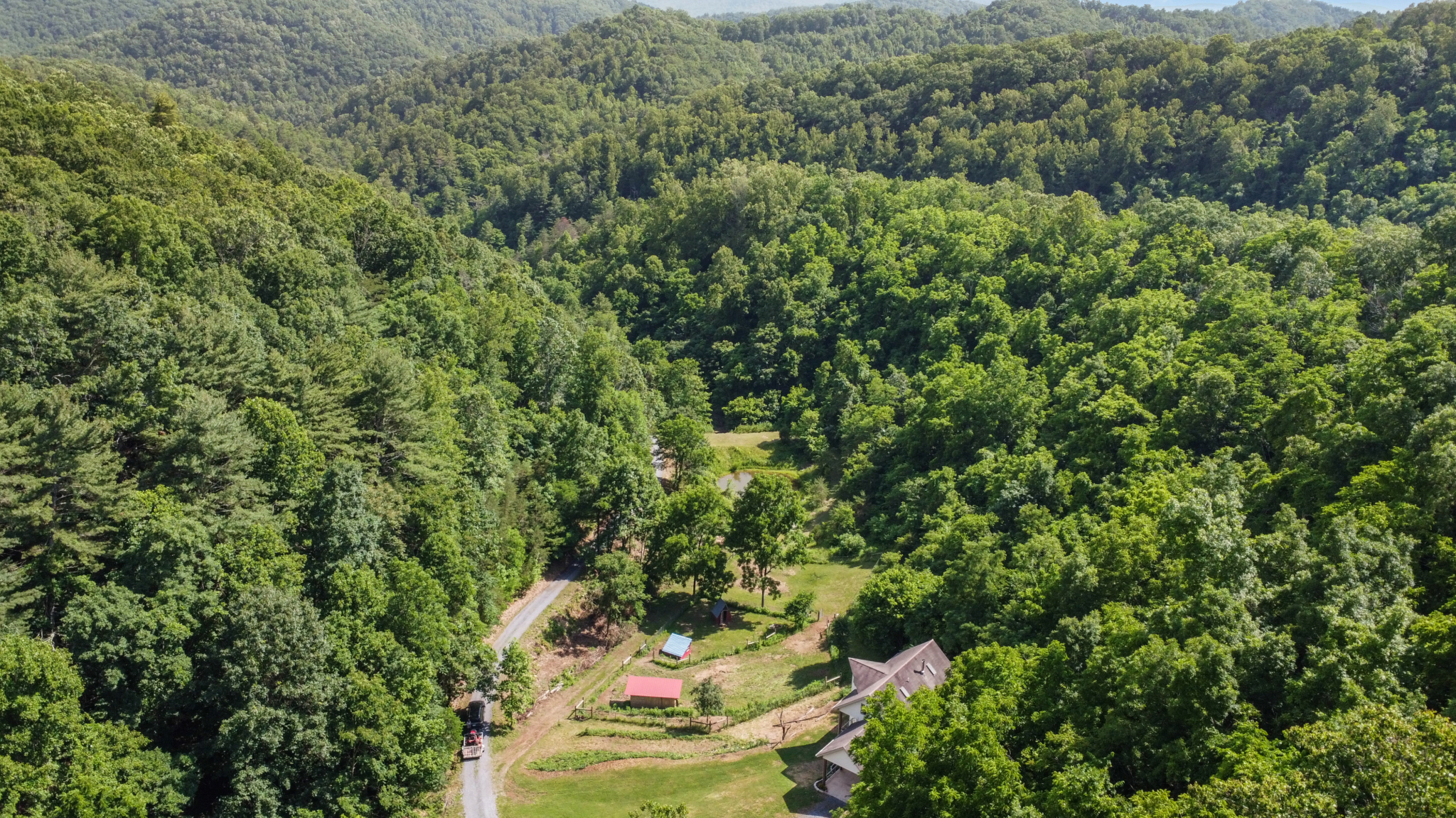 Trails meander through mature hardwood forests and lead to fire circle clearing for campfire gatherings. Abundant wildlife and forest edibles including ginseng, mushrooms, berries & nuts. Buried electric line, 20 gpm well, surveyed boundary. This rare end-of-the-road getaway is ready for your adventures and meditations.