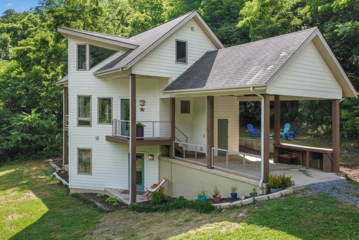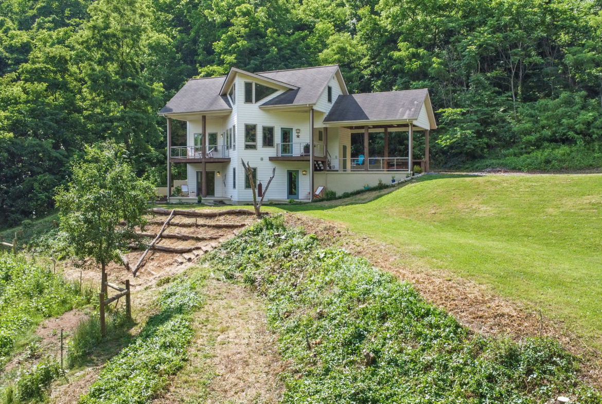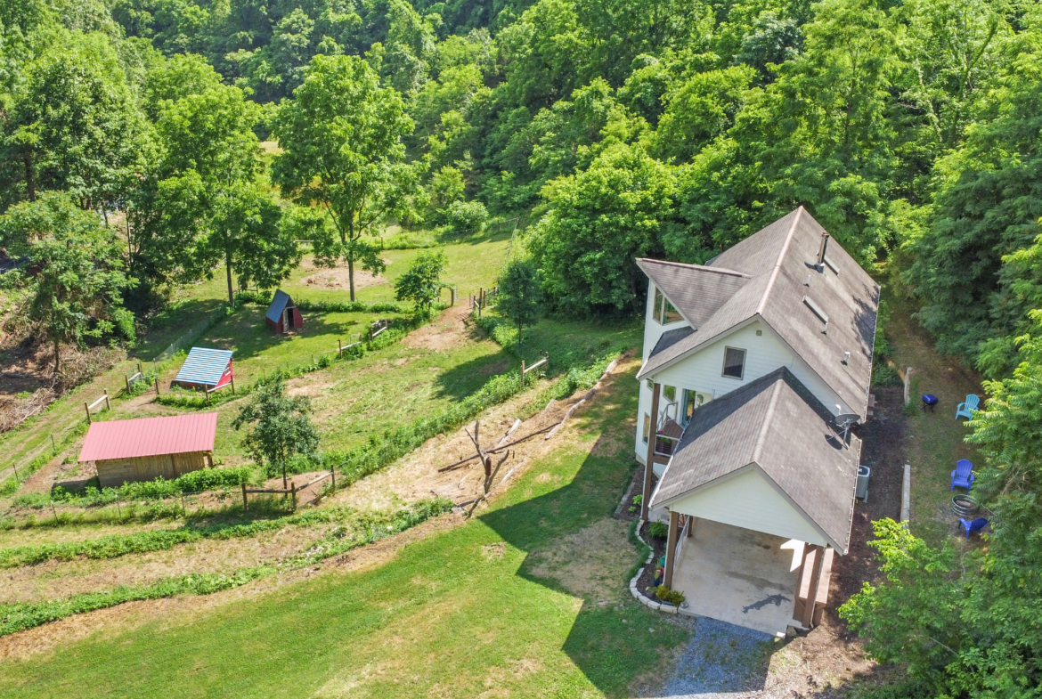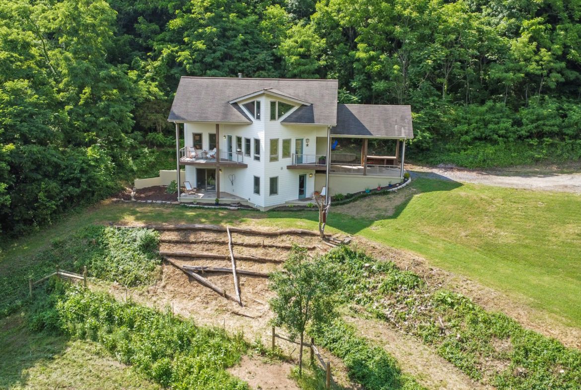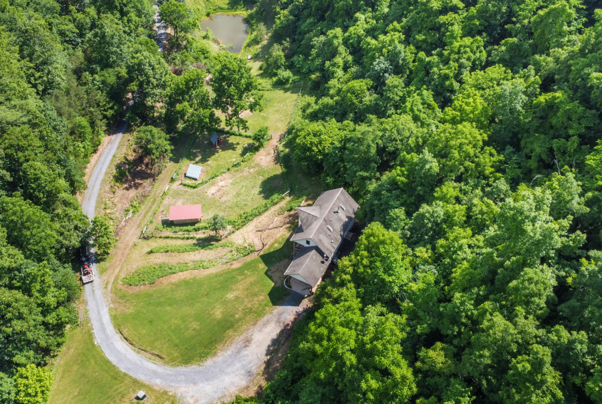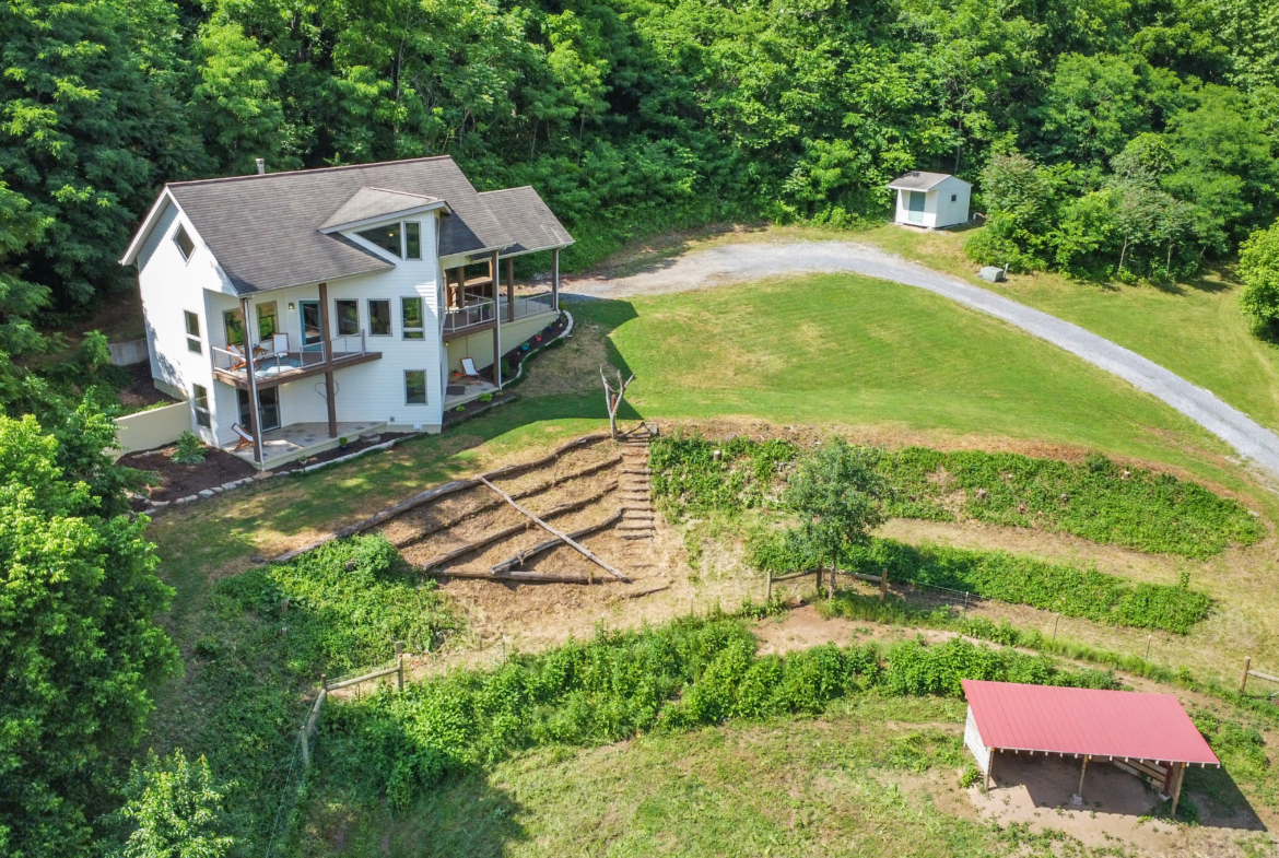 Custom crafted home nestled within a hidden mountain hollow on 100 +/- acres offering ultimate privacy & seclusion only 20 min. to VA Tech. 3BR/2.5BA home by Shelter Alternatives boasts energy efficiency, Hardie board siding, generous natural light, wide-plank pine floors, & stunning natural setting. Decks overlook homestead features of pond, terraced garden beds, fenced paddocks, sheds & chicken house.