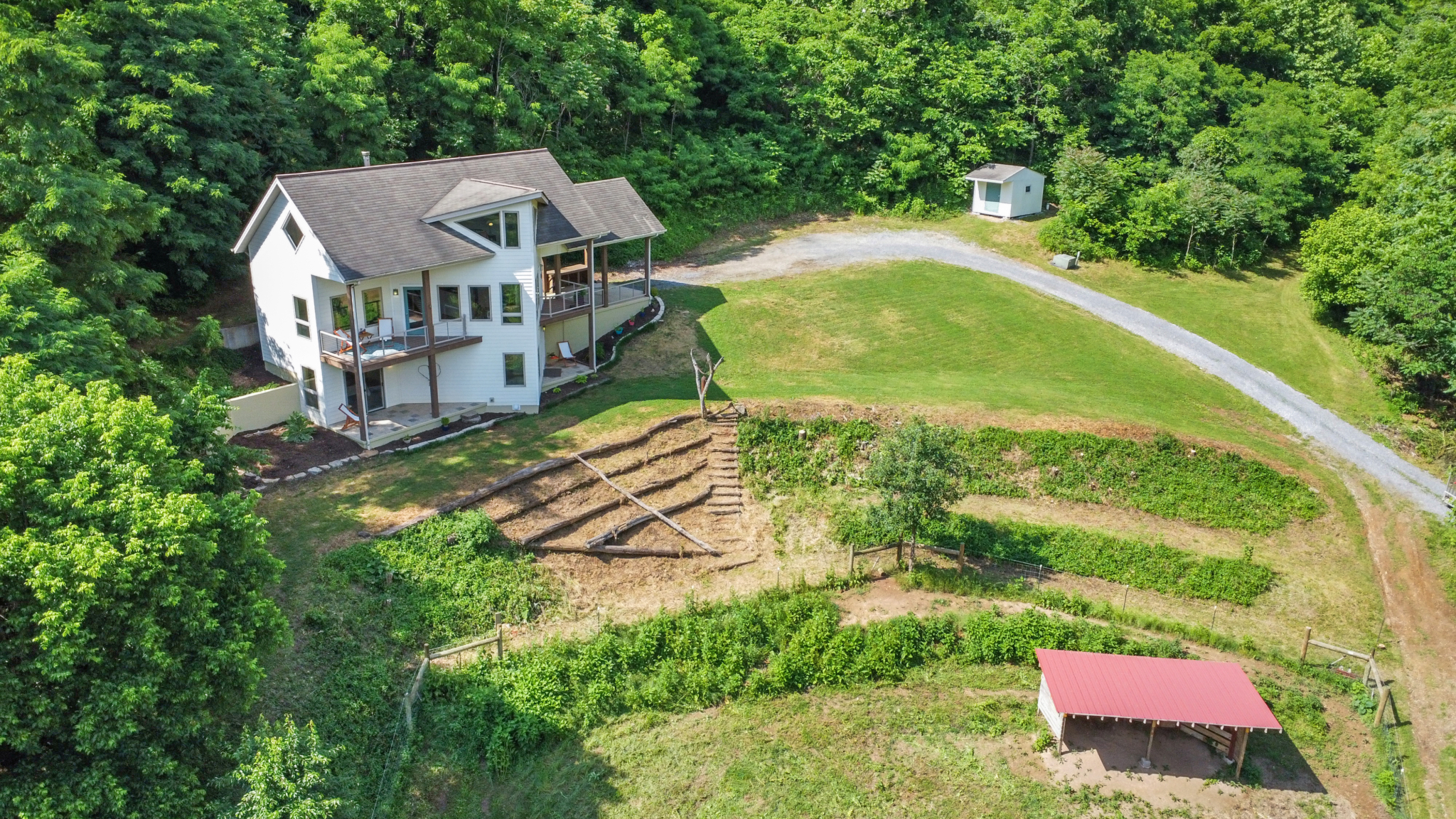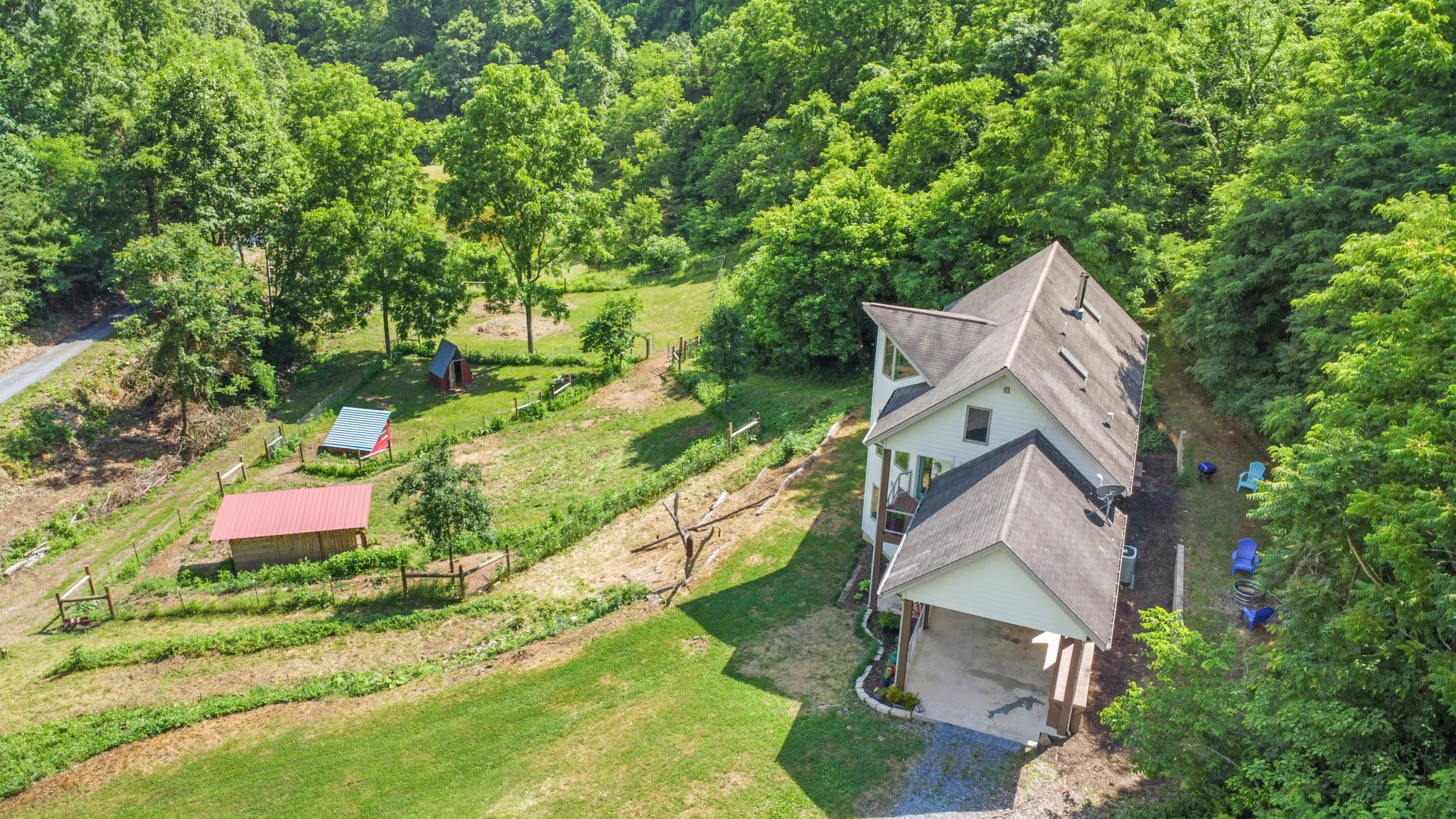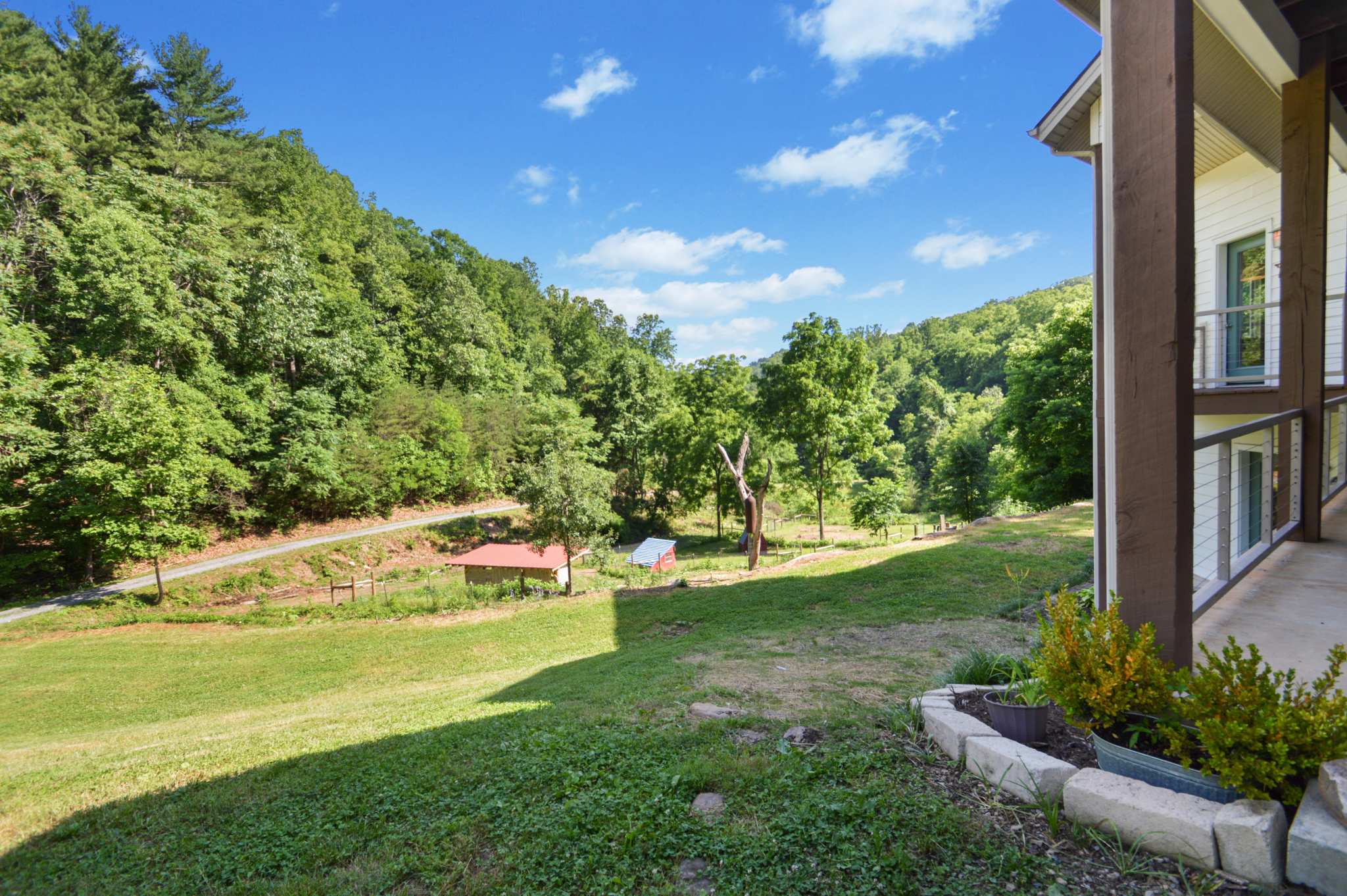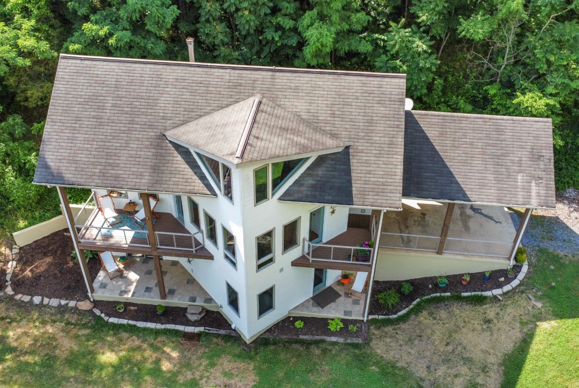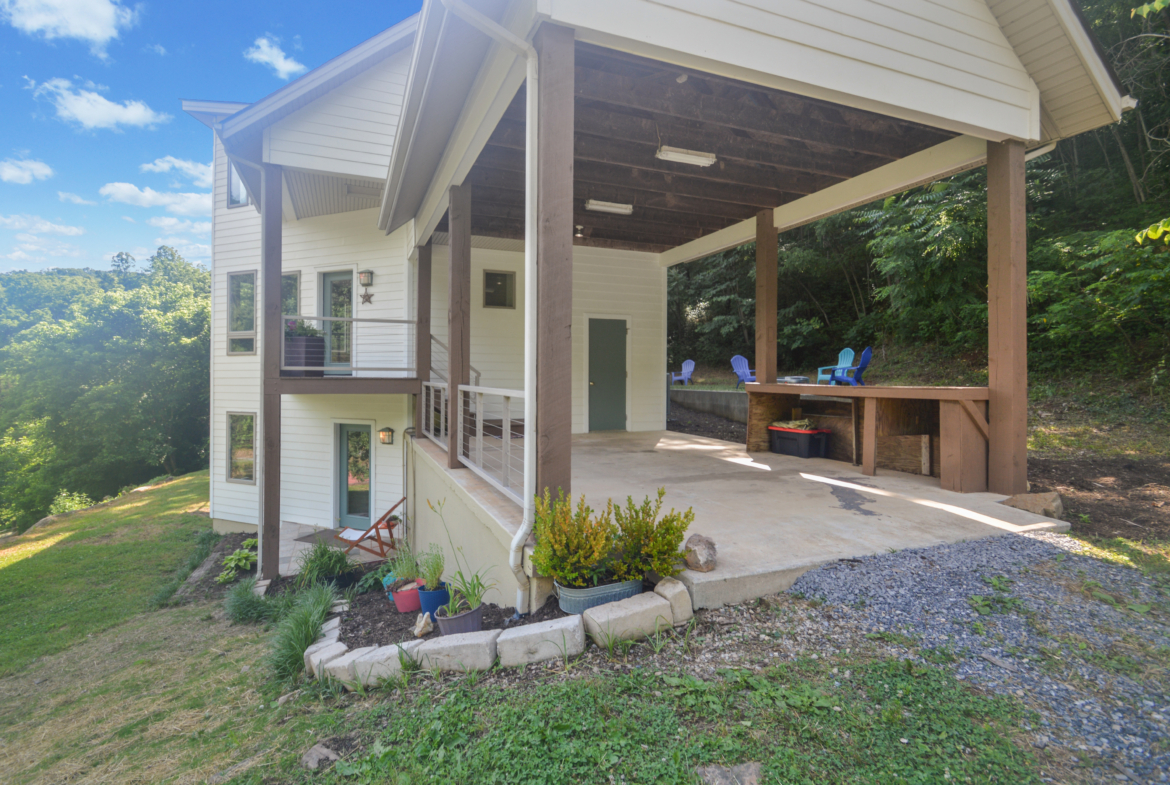 Custom crafted home nestled within a hidden mountain hollow on 100 +/- acres offering ultimate privacy & seclusion only 20 min. to VA Tech. 3BR/2.5BA home by Shelter Alternatives boasts energy efficiency, Hardie board siding, generous natural light, wide-plank pine floors, & stunning natural setting. Decks overlook homestead features of pond, terraced garden beds, fenced paddocks, sheds & chicken house.