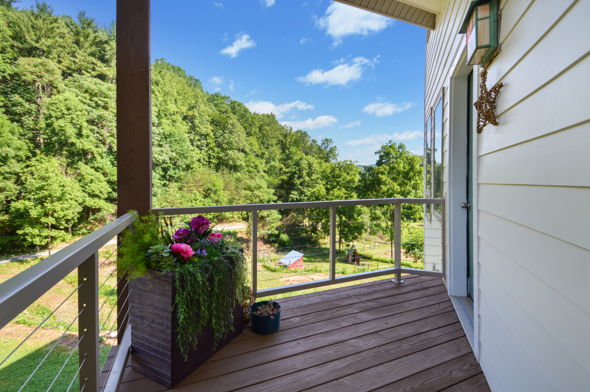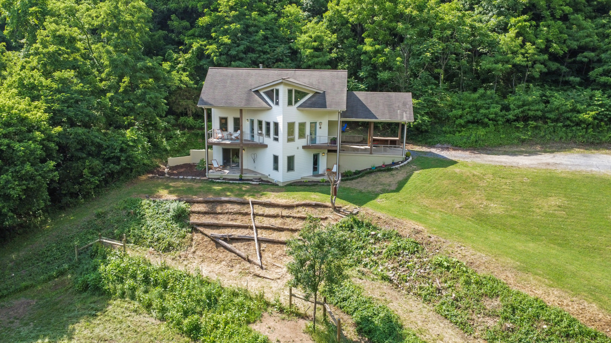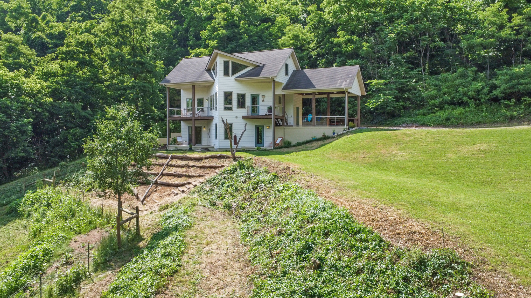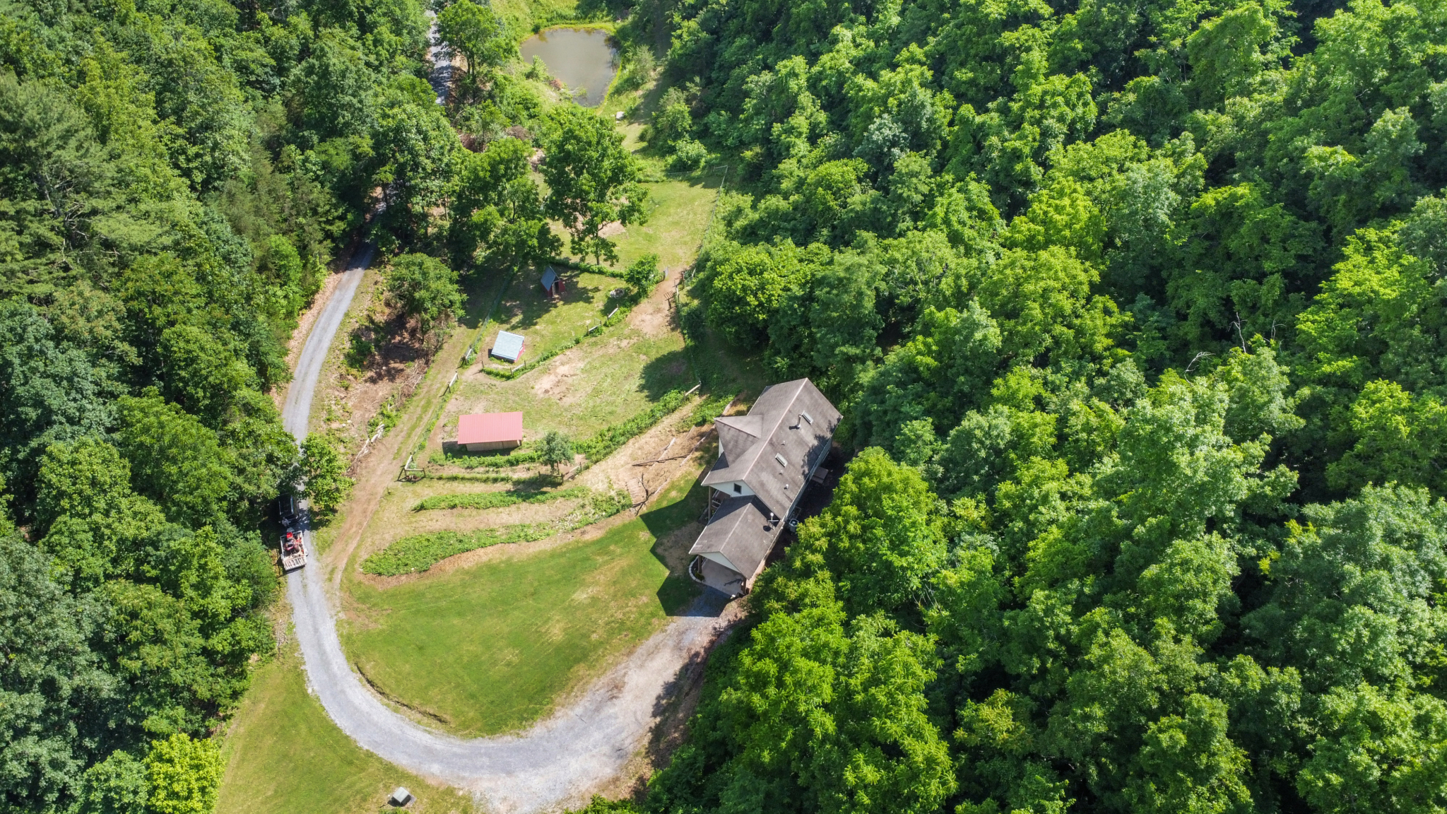 Custom crafted home nestled within a hidden mountain hollow on 100 +/- acres offering ultimate privacy & seclusion only 20 min. to VA Tech. 3BR/2.5BA home by Shelter Alternatives boasts energy efficiency, Hardie board siding, generous natural light, wide-plank pine floors, & stunning natural setting. Decks overlook homestead features of pond, terraced garden beds, fenced paddocks, sheds & chicken house.