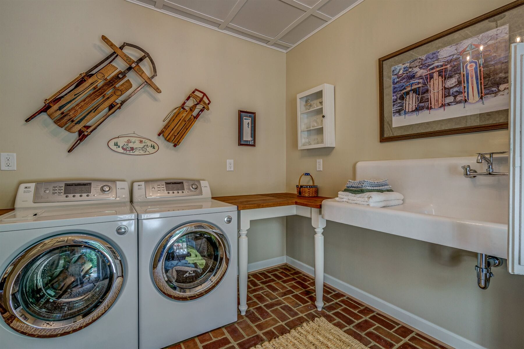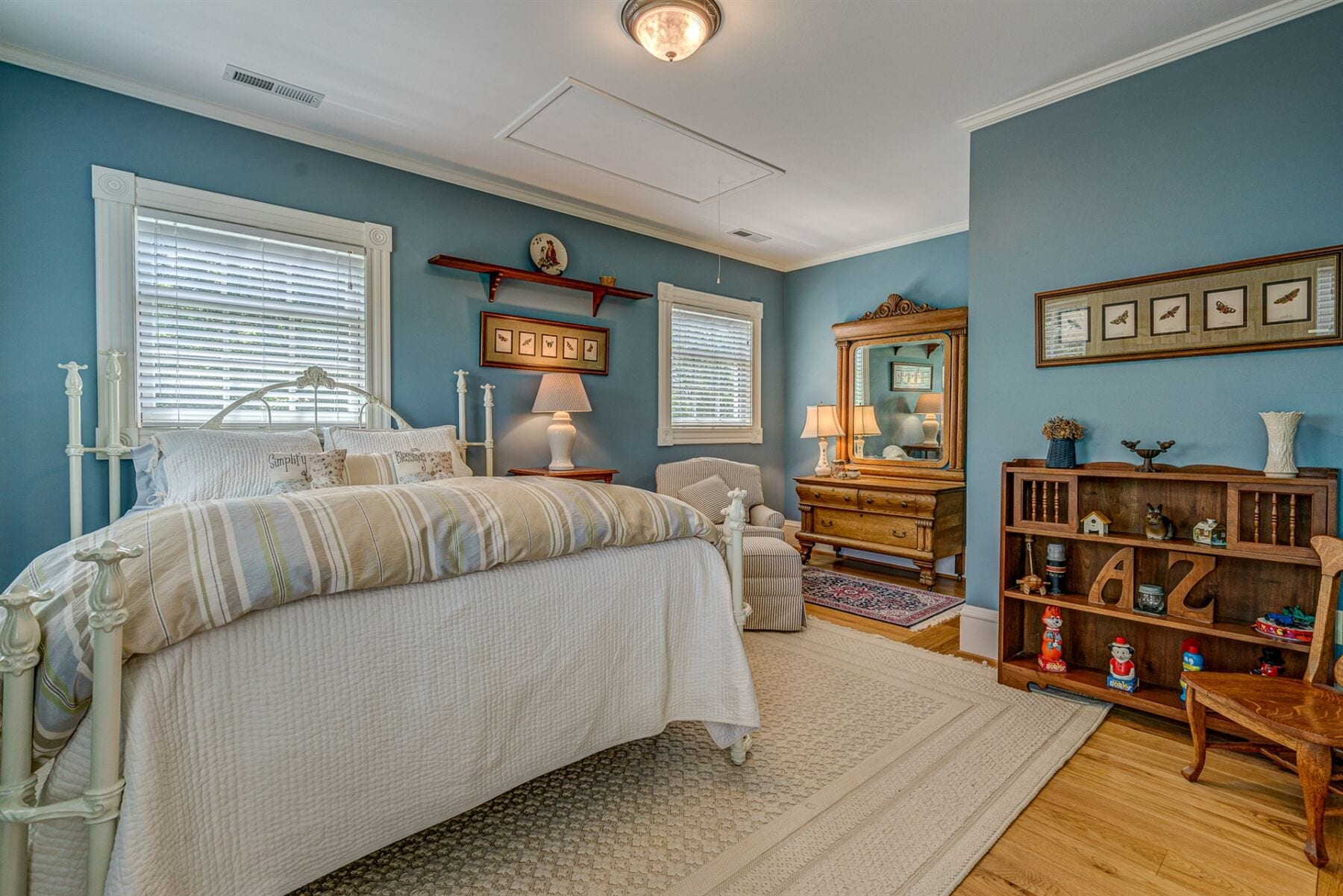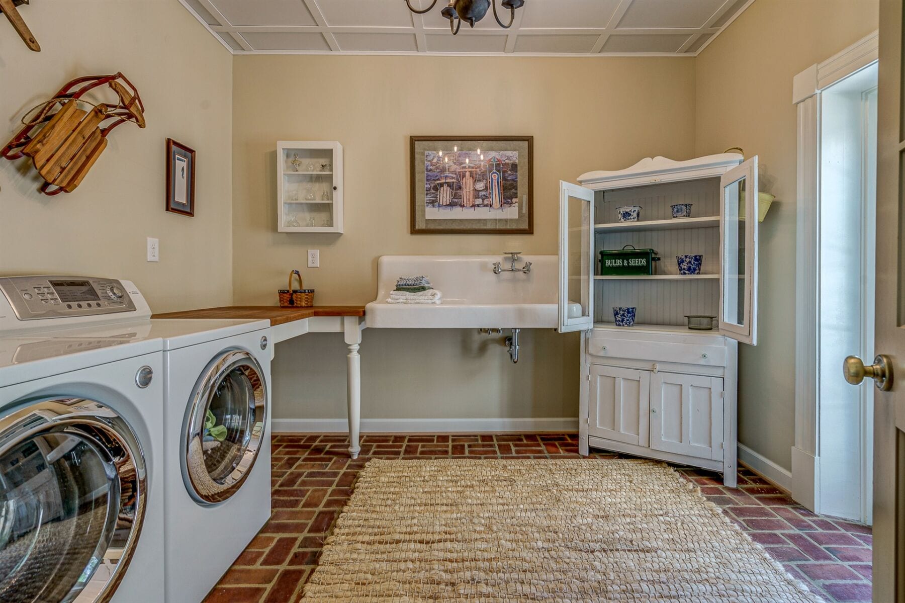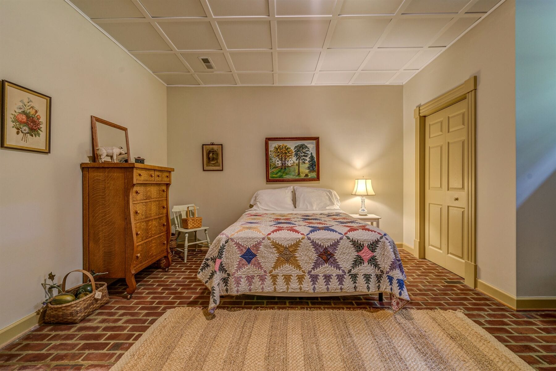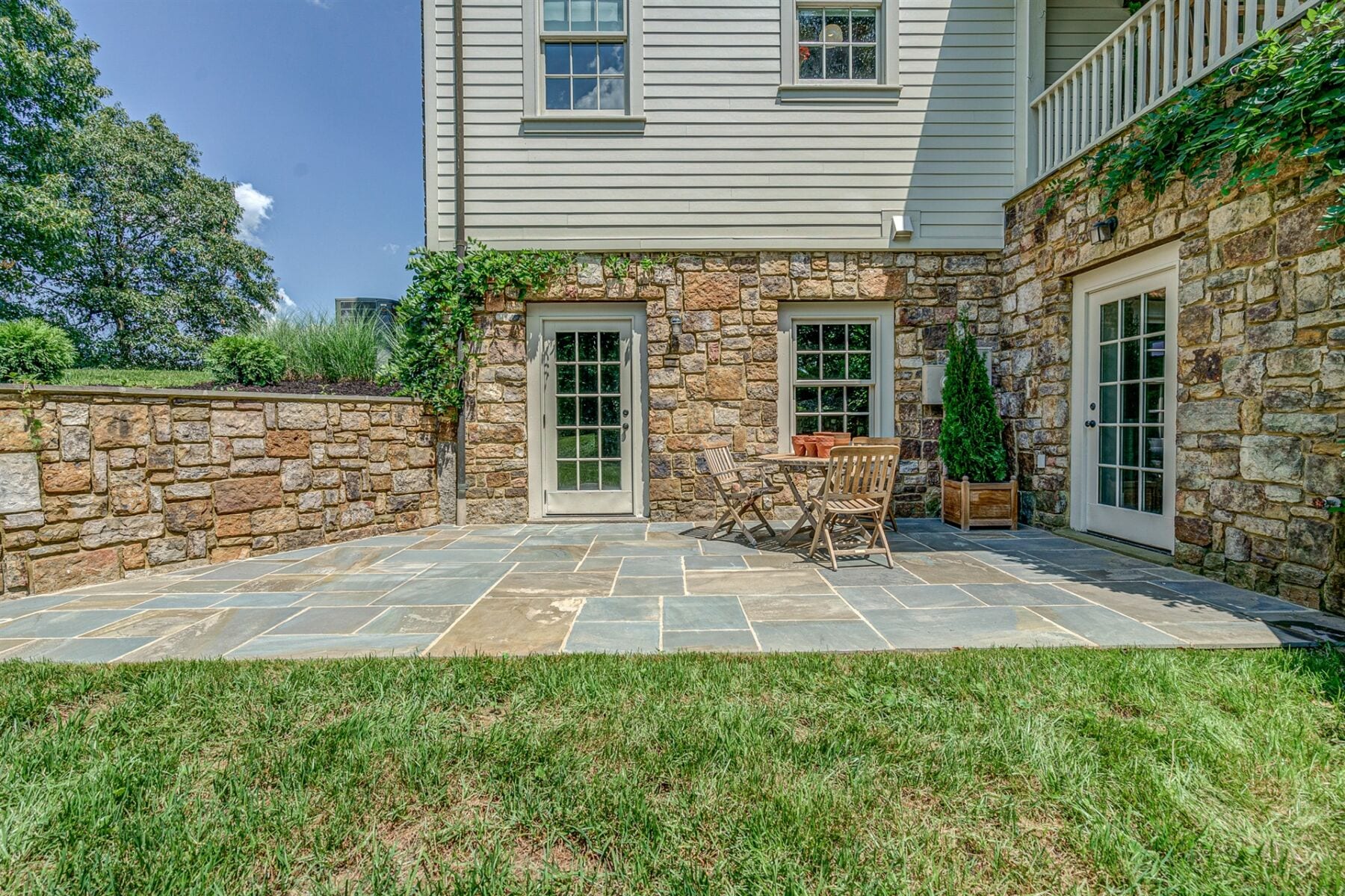 For the custom-built home, the original log cabin was relocated from WV and rebuilt while the stone portion of the home, including 5 large fireplaces, 2 chimneys and exterior walls, was constructed using stone sourced from the property. The interior millwork including solid-core doors and 11″ baseboard was custom milled and constructed on-site. Major restoration efforts to return the home and property to its original glory began in 2017 and were completed in 2020.
