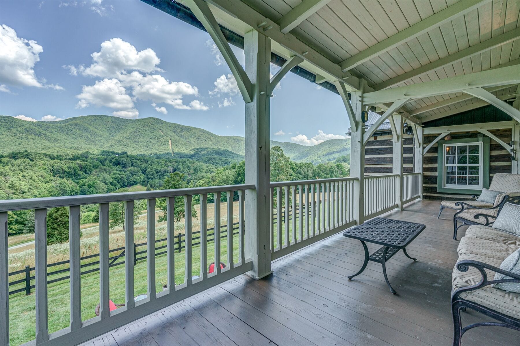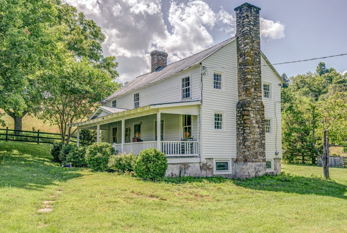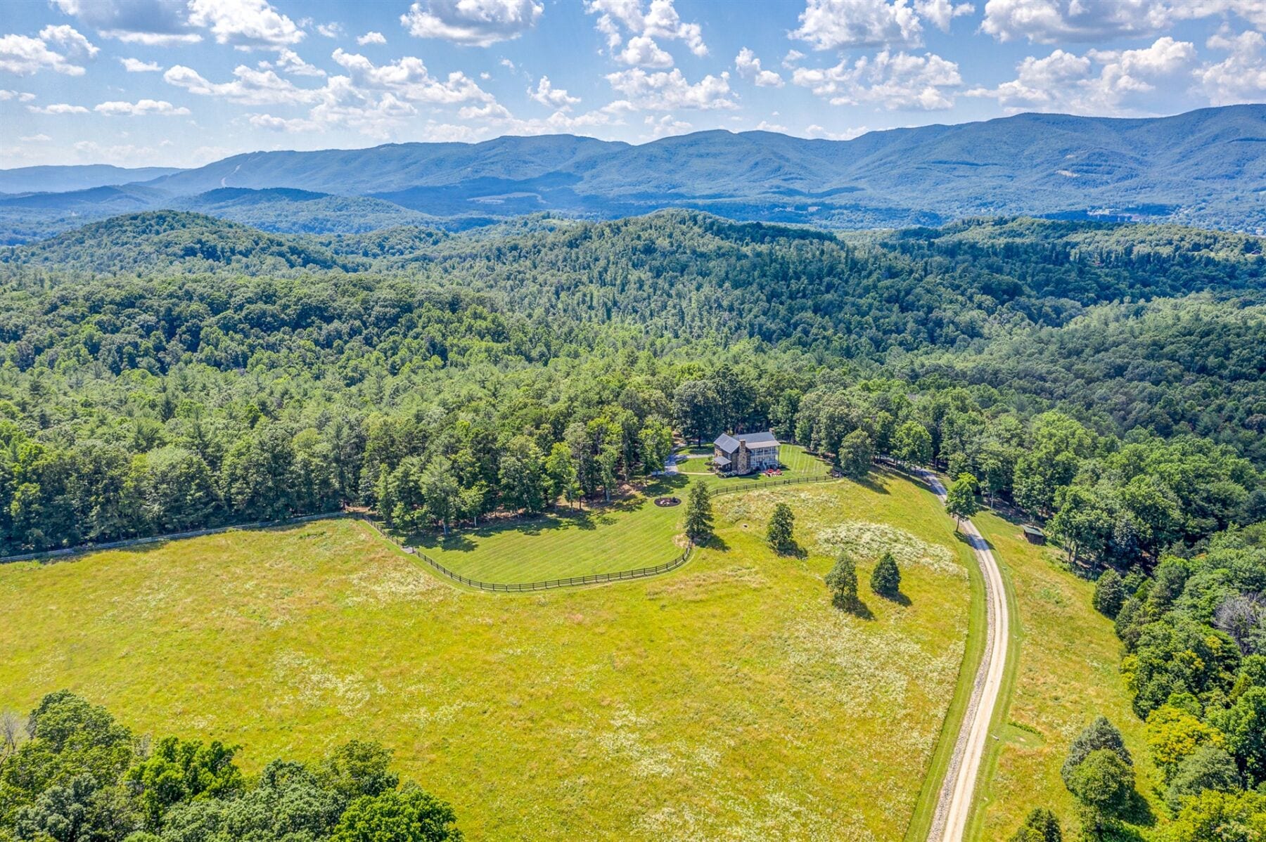Majestically sited on a pastoral hilltop with breathtaking panoramic Blue Ridge Mountain views, the main home was built with a vision of marrying a historic 1807 hand-hewn log cabin with a custom built, stone & timber frame portion to create a masterfully designed one-of-a-kind estate on 44ac+/-. 5,000SF+/- with gourmet eat-in kitchen open to intimate den with stone FP, elegant DR with large bay window, formal LR with original logs & ceiling with exposed beams, 5 generously sized BRs, 3.5 fully renovated BAs, along with inviting FR on terrace level, 4 large porches, & 2 hardscaped patios providing space to unwind at days end. Estate also features 1829 guest house, tiny cabin, beautiful creek, stately trees, and productive pasture to round out this phenomenal mountain estate.