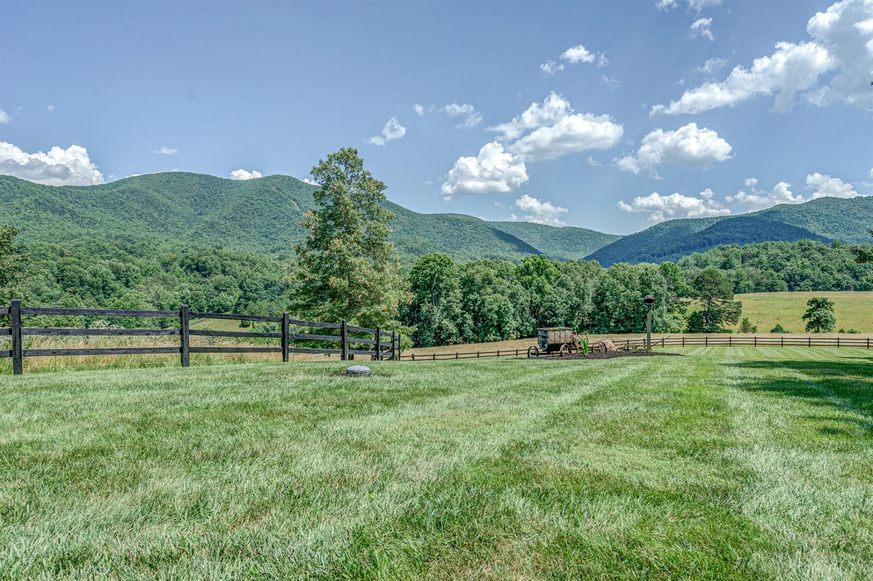 Achieve self-sufficiency on a well-appointed farm with abundant water resources including two private wells, bold year-round stream, and fully functional historic spring house. Keep your hearths warm burning wood from your own forest and plant your garden in rich creek-side soils. Explore the surrounding natural beauty while touring the level lawns with lush professional landscaping, hardwood forest managed for wildlife habitat and flush with game and trophy bucks, organically maintained fenced pastures perfect for cattle or horses, and over one mile of walking paths winding throughout. Located just 2 minutes from the Green Hill Park Equestrian Center and less than 7 minutes to shopping and dining, this luxury estate offers a rare combination of convenient location, superb scenic setting, and numerous features making it ideal as a family estate, horse farm, or private close-in retreat.