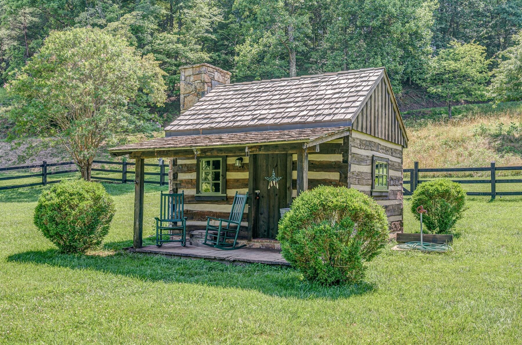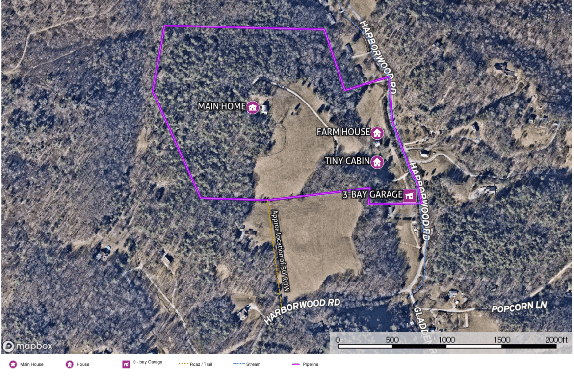 At the base of the property lies an expansive 3-bay garage for all your work and play equipment. It sits along a beautiful, seductive creek that produces the utmost peaceful sound of cascading water over the rock beds and through the river stones. Meander along the creek past the charming tiny cabin with large stone fireplace to the lovingly preserved 1829 3BR, 1 BA farmhouse perfect for future use as a guest house, caretaker’s cottage, or AirBnB.